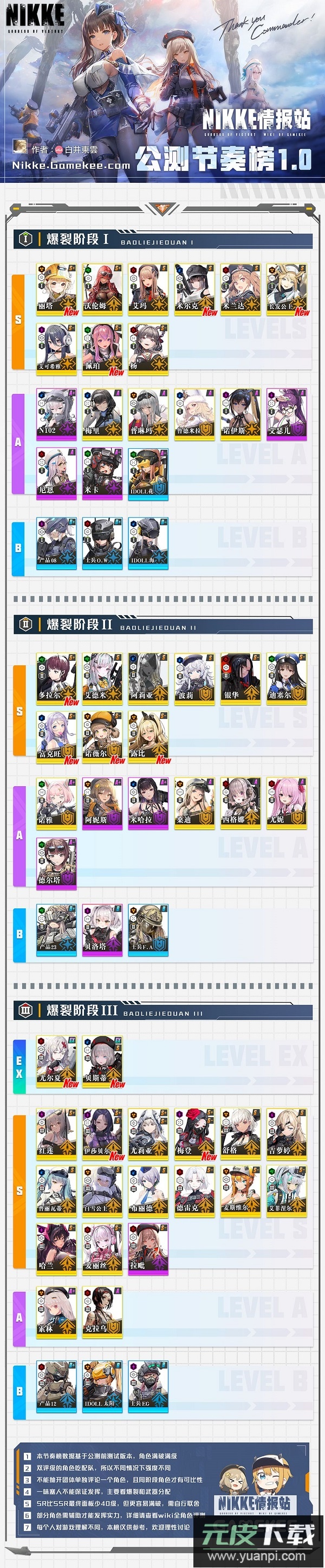 本次榜单加入了公测阶段的12位新角色,并依据实际技能数据进行了调整;