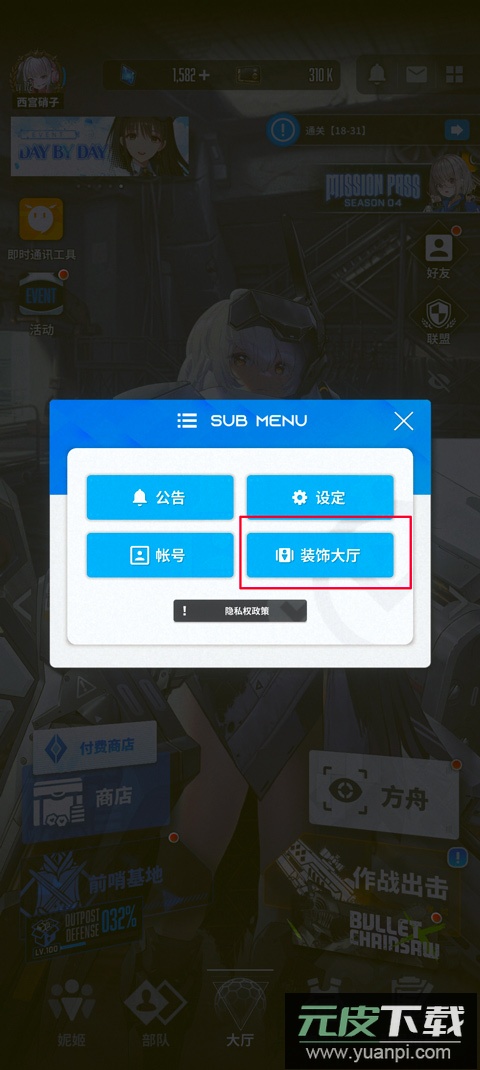 2、在设置页面中找到并点击“装饰大厅”选项。