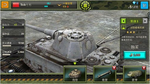 4、给坦克购置全新的配套装备,就能直接提升坦克的火力、防御、机动等各项属性;