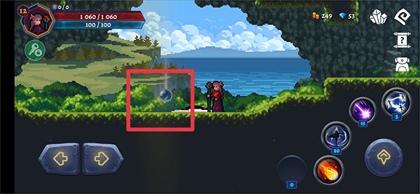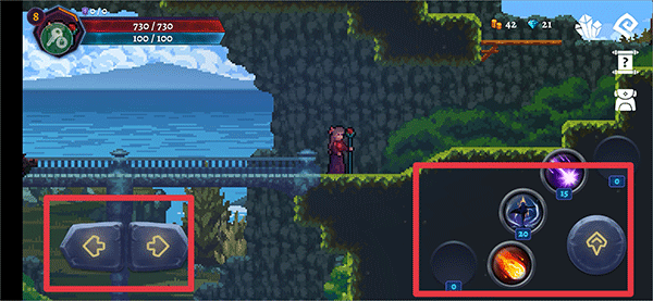 1、进入游戏后,使用左下方向键控制角色移动,右侧上键为跳跃,其余按键则对应各类技能;