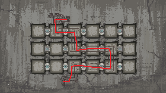 下阶梯后持续向左移动,可见一处洞口;解开洞口谜题,具体排列方式参照下图。