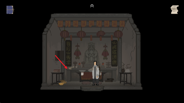 进入祠内,点击左侧柜子可获得一枚金元宝。
