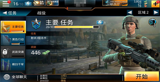 战役中有“主要任务”“黑色行动”“武装突袭”和“横扫千军”,均都按区域划分;