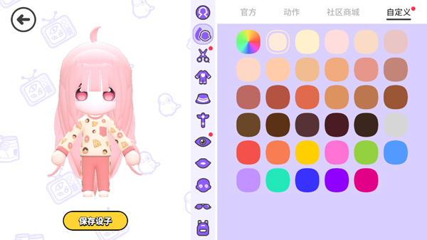 3. 从提供的肤色中挑选喜欢的颜色,确认后点击“保存设子”即可完成更换。