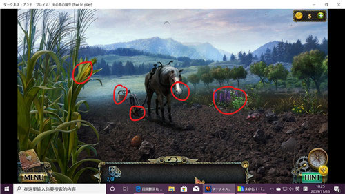 3、玉米地,摘下玉米并剥皮,喂食给马;马匹拉动犁具,翻开土地后找到钥匙。
