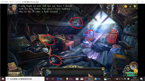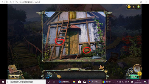 1、仓库,放置木桶,将梯子架在木桶上,登上阁楼;用钥匙开门进入。