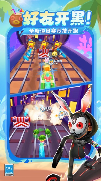 游戏内有各种各样的功能道具,还有丰富多样的人物设定。玩家操控的角色会在有地铁来回通行的隧道里穿梭,沿途收集金币,捡取各类有趣的道具,冲击超远距离的跑酷记录。不断切换的地图场景能带来源源不断的新鲜感,跑酷过程中还能收获各类惊喜奖励。