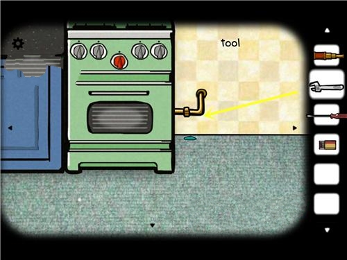 4、进入厨房,用螺丝刀打开右下方的微波炉,放入虾;打开红色开关后用火柴点火。关闭再打开微波炉,内部出现一幅风景画,点击进入后可获得方块。回到火炉房间,将磁带团放入壁炉点燃,把方块放回照片后的凹槽,点击通关。