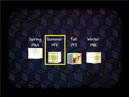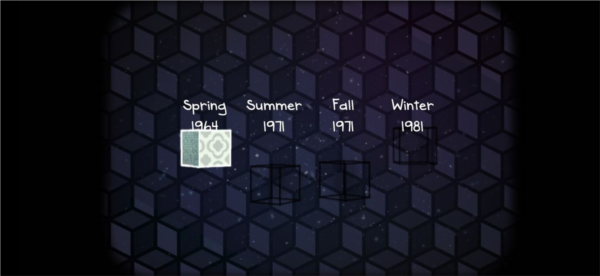1、游戏开始有四个方块代表季节,但初始只能选择春季进入。故事发生在1964年春季,玩家置身于一个四面皆可探索的房间。