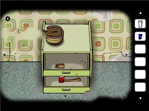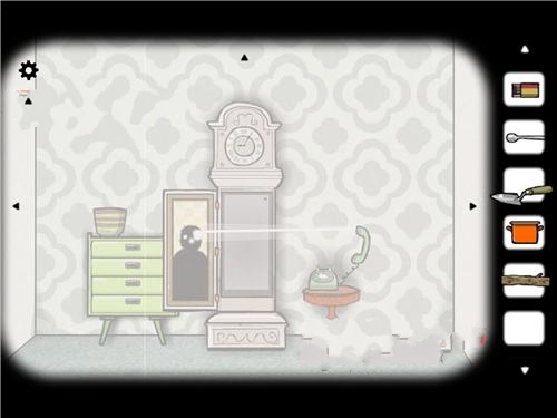 2、首先面对有座钟的墙面,点击盆栽旁的柜子,从抽屉里拿到火柴和勺子。右转来到窗户房间,打开墙上的灯;点击上方天花板,从灯罩内取得一块照片碎片。再次点击窗户,会飘出另一块碎片。