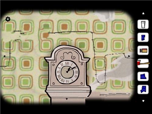 3、进入火炉房间,在左上方装置取得另一块碎片。注意右下方桌子上的收音机带有电子钟,显示时间为13:10。返回客厅,将座钟时间调整至13:10,下方钟柜会打开,从中取得最后一块照片碎片(此时镜中会出现黑色人影)。回到火炉房,用火柴点燃木头,拼好照片并放入方块即可通关。