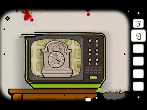 2、右转至火炉房间,壁炉已在燃烧。点击墙上的备忘板,在纸片下发现一块照片碎片。下方有一台电视,切换频道至特定数字(如3或4)会出现画面,按照画面提示依次切换对应数字的频道,最终可获得方块。