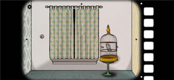 来到下一个场景,一扇拉着窗帘的窗户,旁边鸟笼里关着一只鹦鹉(哈维)。