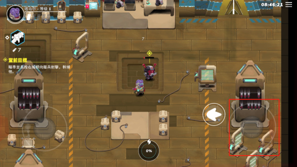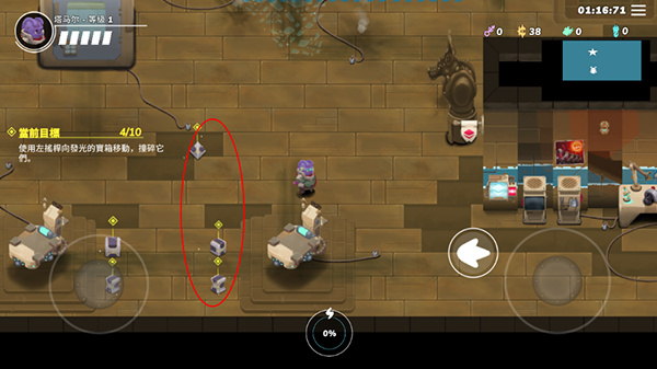 5.获得武器后,屏幕右侧的圆形操控盘便会激活;点击可发射子弹进行攻击,滑动则可调整射击的方向。
