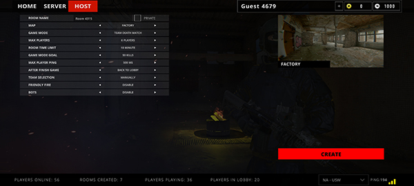 1、下载并安装好代号真实手游,进入游戏主界面后点击“host”按钮即可创建专属房间;