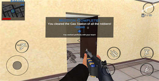 10、将所有劫匪全部击毙后就能拿到对应的任务奖励,对局过程中要时刻留意左上角的红色生命值条;