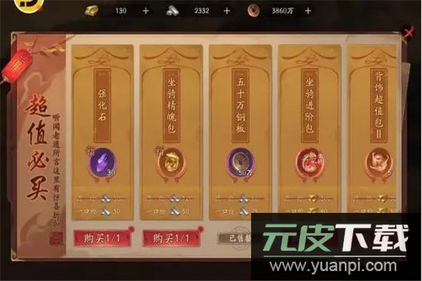 超值必买区可选择性兑换所需材料。