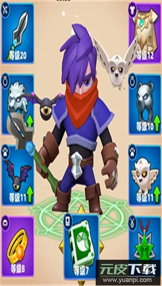 第八章的关卡BOSS各具特色。小飞象的旋转激光球伤害很高,建议在角落位置集中输出;稻草人会召唤发射器释放旋风球,需要在地图底部灵活游走;大黄蜂会从角落召唤小怪,建议选择一些范围性或弹射类技能协助清场;最终BOSS结合了冲撞与弹幕攻击,战斗时需保持高度警惕。