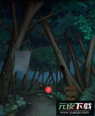 4、留意红色数字【一三四二】,结合墓碑旁树上的红色符号,按图示打开箱子,取得【图腾】并放入石洞左侧凹槽。