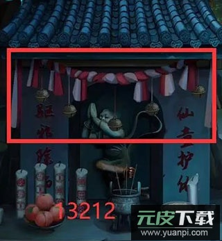 11、将圆块放置旁边箱子上,参照周围物品数量,输入密码【壹伍叁贰】,打开后得到【红玉棒】;将其放入鼓仙之子棺材的红色凹槽,从口中取出【玉蝉】,用于开启爷爷的棺材,找到【莲花牌】,至此第二章完结。