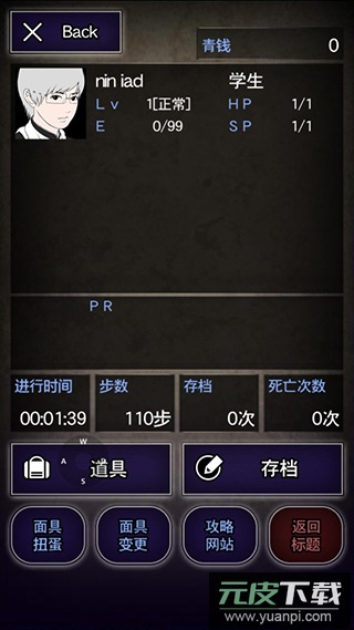 点击界面左上角的角色头像,可以打开信息面板,查看当前获得的物品,并进行游戏存档。