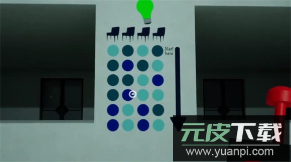 2、各颜色灯泡点亮规则不同,可参照墙面图案提示寻找线索;