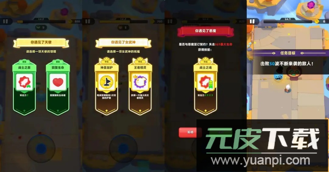 3、延续割草升级玩法,击败敌人快速提升角色战力;