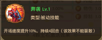 两颗宝石效果:速度提升3.0%;四颗宝石效果:获得奔袭状态,开场四回合内速度提升10%。