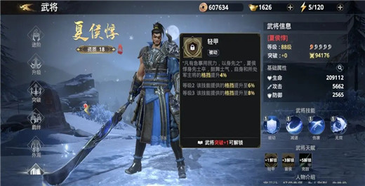 18资质夏侯惇,提升资质后可进阶为20资质金将