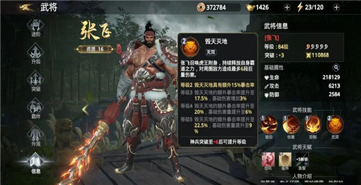 虽然天赋技能没有给主将增加百分比属性,但是张飞的破击速度和大招伤害在全游戏内都属于顶尖梯队,竞技场、共讨玩法中搭配郭嘉、孙尚香可快速击杀对手,也是平民零氪玩家的优先培养选择。