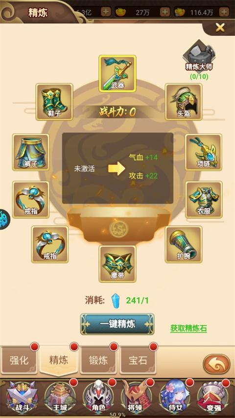 装备精炼可以提供高额的属性加成,每一次精炼都能让你的战斗力得到大幅提升;