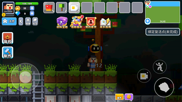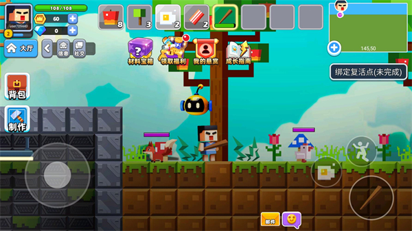 2、联机冒险模式:支持创建或加入其他玩家的房间,与好友组队探索世界、合作建造或参与大乱斗。大乱斗模式中,玩家需收集材料制作武器,通过战斗击败对手,体验紧张刺激的竞技乐趣。