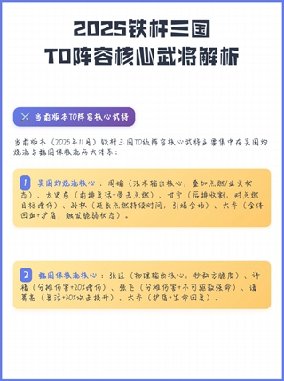 2025铁杆三国T0阵容核心武将解析,助你快速上分: