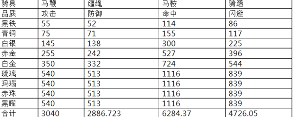 每件骑具品质提升都会为角色增加额外属性;