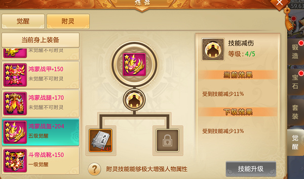 附灵介绍:只有觉醒后的装备方可进行附灵;附灵能通过技能为角色增加属性,激活附灵技能需要对应部位的装备技能书,激活后还可继续升级以提升效果。更换装备时,附灵等级同样无损继承。