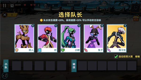 2、需要选择一名队长角色,队长会获得额外的属性加成,尽量选择战力更高的角色担任;