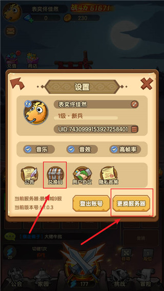 4、点击个人头像就能找到兑换码入口,输入对应兑换码可以领取专属奖励;