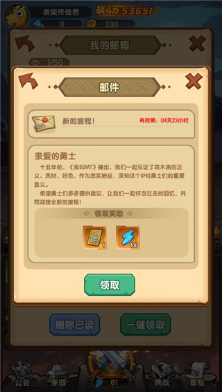 1、进入游戏后可以直接在邮箱领取官方准备的新手福利;