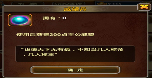 威望丹:使用后可获得200点主公威望