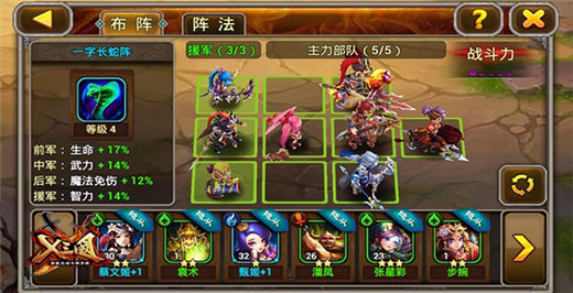 常玩卡牌类游戏的玩家都知道,平时要准备两套阵容,分别应对PVP对战和PVE推图。群雄争霸的出战阵容要优先堆攻击属性,重点注意两翼位置的输出配置,做好技能搭配和援军出场顺序的设置。和副本要追求五星通关的要求不同,群雄争霸只要能赢就算损失几个武将也没关系,当然碾压级的战力差距可以无视所有技巧。