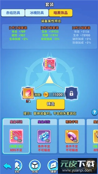通过锻造套装能获得可观的战力加成;玩家可消耗套装材料与金币进行锻造;