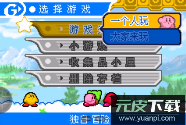 开始游戏时,玩家可选择单人体验或与朋友共同游玩,多人模式最多允许四位玩家一同参与。主控角色为粉色卡比,其余玩家则可选用红色、黄色或绿色的卡比形象;如果玩家人数未满,空闲的卡比将由电脑自动接管协助。