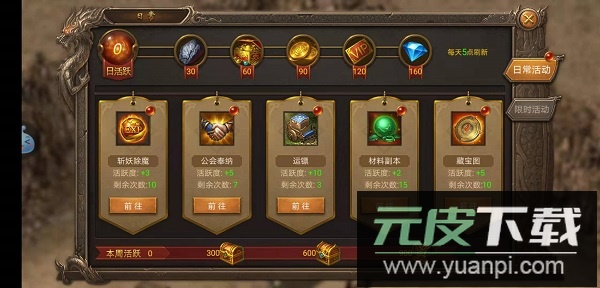 藏宝图玩法:每日完成,可收获宝物及日常资源。