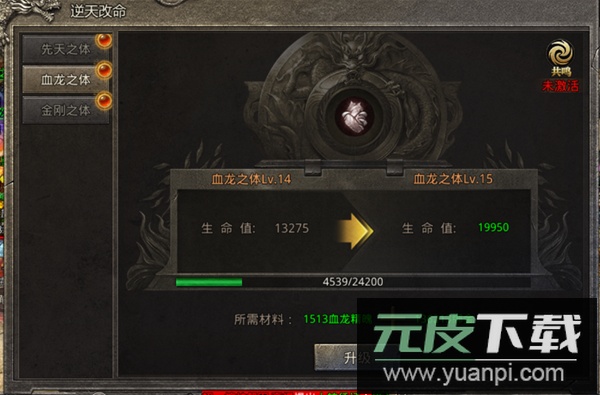 提升需使用血龙精魄与绑定金币,材料可通过闯天关、黑市等途径收集;血龙之体等级的提升将直接增加角色的生命值上限。