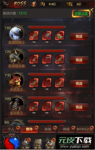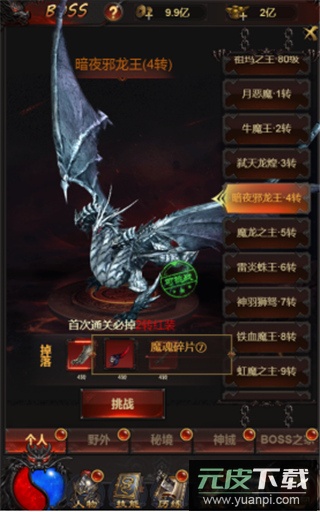 1. 支持单人挑战,收益独立;随着等级提升,可挑战的BOSS数量逐步增加;