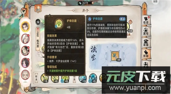 【护体剑盾】可提高自身伤害减免,受击时抵消部分伤害,剑盾存在期间遭受攻击将以普攻反击目标。