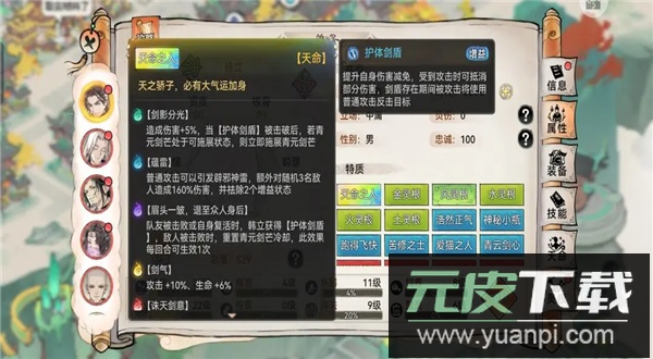 队友被击败或自身复活时,韩立获得【护体剑盾】;敌人被击败时,重置青元剑芒冷却,此效果每回合生效一次。