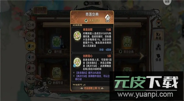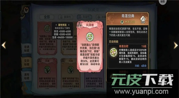 推荐将木灵根变异为风灵根,因灵根密藏风满堂大幅强化了青莲功法,当任意角色倒下时可移除冷却时间,立即施展青莲。