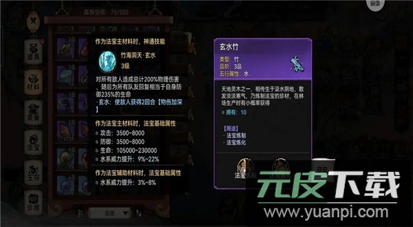 韩立作为输出角色需要法宝威力加成,水韩立推荐水皮或水竹子,金韩立可使用庚金或金牙作为法宝材料。