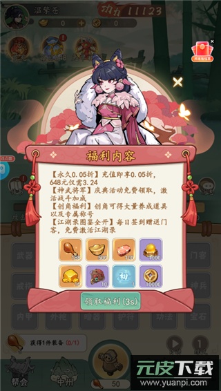 每日登录可领648限时银票,累计最高可得1000;免单福利支持200元以下礼包免费获取;充值享受永久0.05折优惠,648元仅需3.24元;庆典活动免费领取神武将军,激活战斗加成;七日签到送绝品门客、神兵及头像框;创建角色即得大量养成道具与专属称号;门客图鉴通过每日签到赠送门客免费激活。